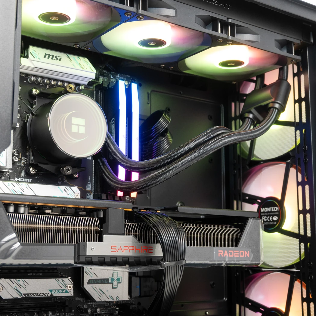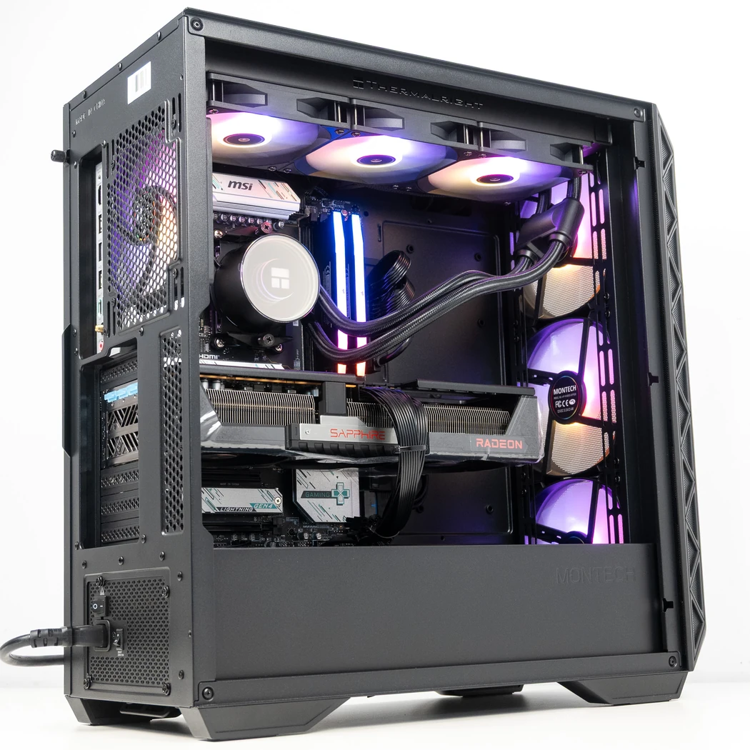 This Prebuilt Desktop Computer With AMD Ryzen 7 7800X3D offers great performance for Gaming at 1440P & 4K resolution with your choice of graphics card. With 8 Cores – 16 Threads, the system performs well in professional work programs that leverage multi-core / multi-threaded performance.