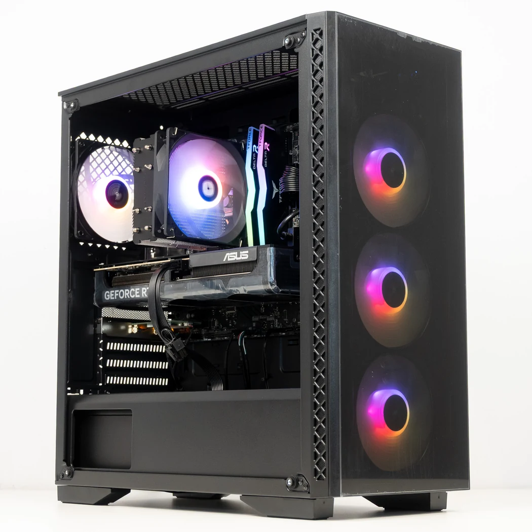 One of our entry-level prebuilt Gaming PC options. This unit includes the 4-core / 8-thread Intel Core i3-12100, a budget-conscious processor that rivals the AMD Ryzen 5 5500. The system works great as a home media station, lightweight work programs and modern games at 1080P Resolution.